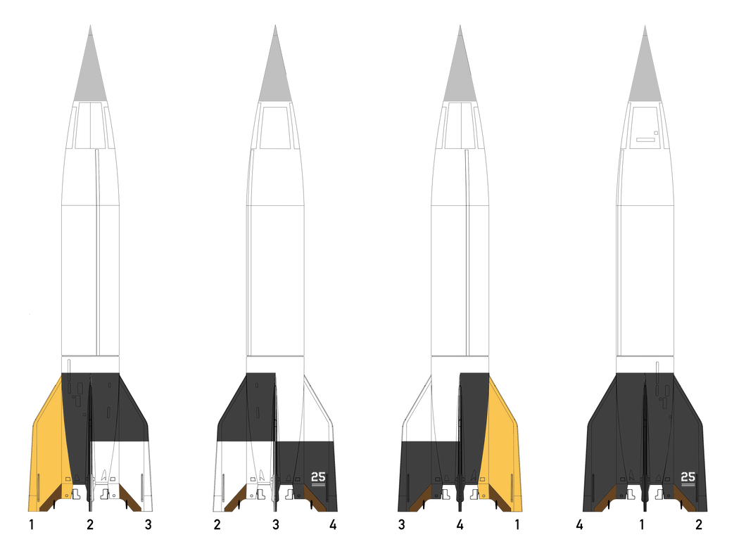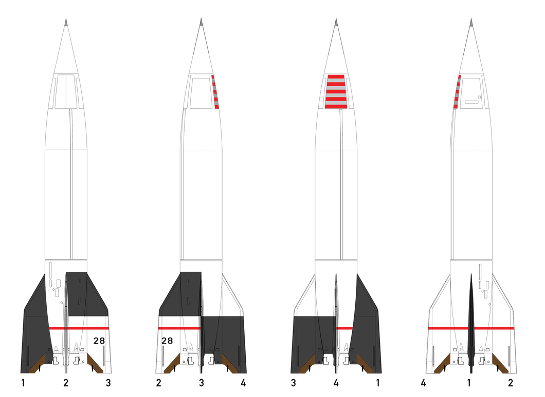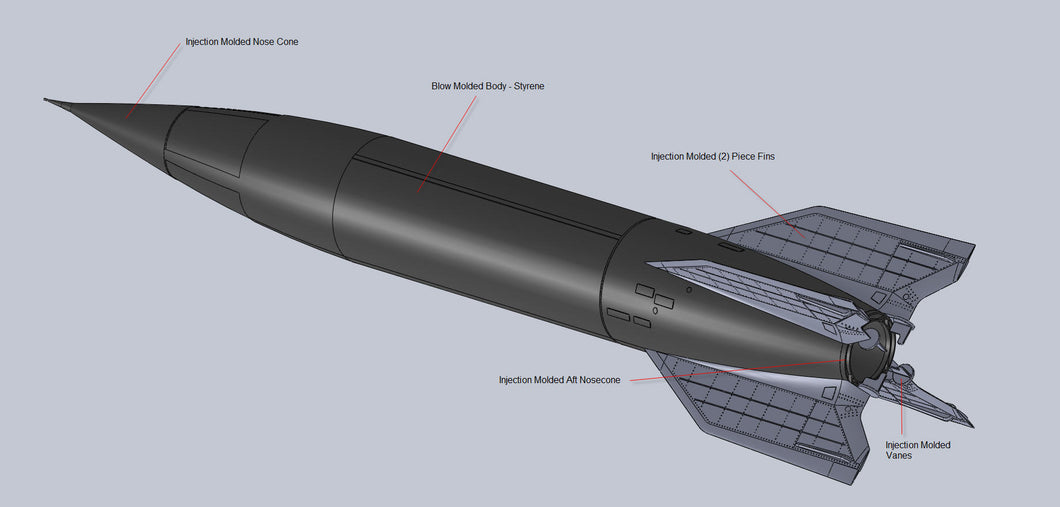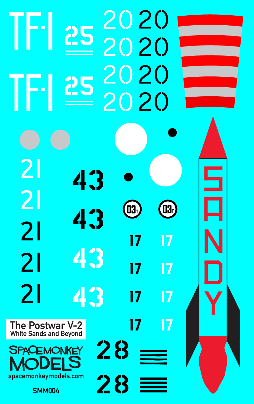 Our V-2 kit will return soon with an all new decal sheet, documenting multiple examples from the post-World War II era of the rocket. Standing in at 23” tall, The Spacemonkey Models V-2 kit is a 1/24 scale plastic model assembly kit of the World War II-era German V-2 ballistic missile and postwar research rocket. Molded in the USA from high-impact polystyrene, this new 2026 version of our features markings for nine different post-World War II V-2 variants, printed in Ohio by Champion Graphics.